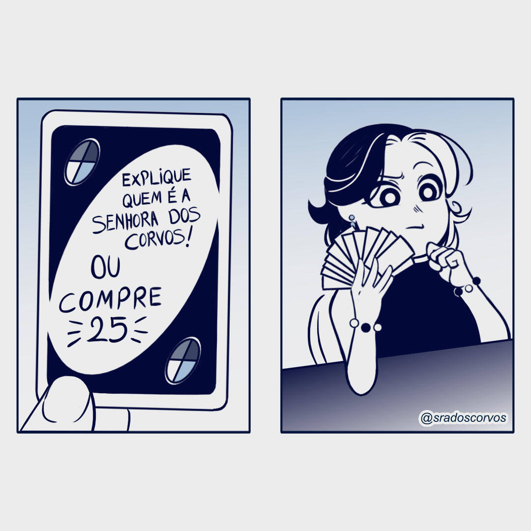 Olá, eu sou a Carmen, vulgo Senhora dos Corvos, uma ilustradora brasileira que está apenas no começo de sua jornada.Gosto de compartilhar minhas ideias e projetos pessoais em redes sociais como a Senhora dos Corvos (@senhoracorvos), produzindo ilustrações de personagens, vídeos curtos de humor, speedpaint e outros. Trabalho com ilustrações 2D com foco em artes mais cartunescas e adoro paletas mais monocromáticas, tendo uma em tons de azul e cinza para minhas redes sociais.Atualmente, busco novas experiências na área de ilustração e estou sempre aberta para uma boa conversa. Você consegue entrar em contato comigo pelas minhas redes sociais ou pelo e-mail: [email protected]